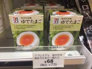 Ici, à Tokyo, des œufs mollets en boite vendu à la pièce au prix de 68 yens, soit à peu près 0,50 euros. Ces oeufs mollets sont probablement le sommet de la “nomadic convenient food”, la nourriture pratique et nomade. Bon appétit !