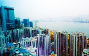 Photo prise du 28ème étage du EAST HOTEL dans le quartier de Island East à 6h20 ce jeudi matin.