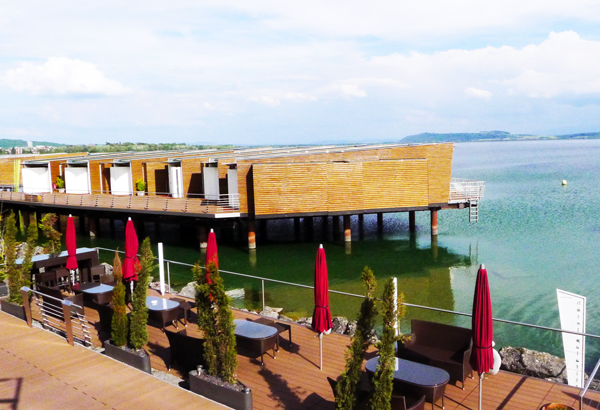 Installées sur pilotis sur le lac de Neuchâtel en face des Alpes, par beau temps la Jungfrau et le Mont-Blanc concourent au grandiose spectacle, cet hôtel invite par tous ses aspects à la rêverie productive. Y écrire, y brainstormer, y prendre de la hauteur ou y réinventer le monde avec des amis ou collègues est naturel ici.