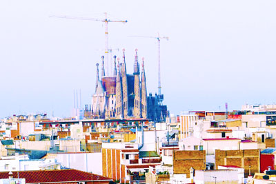 La Sagrada Familia, vue de la terrasse de la Casa Fuster à Gracia, est encore plus impressionnante qu’à l’accoutumée. Elle domine la ville, tel un iceberg géant sur l’océan, et imprime sa marque au cityscape de Barcelone.
