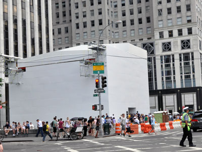 Que se passe-t-il donc sur la 5ème Avenue, la belle avenue newyorkaise ? Le magnifique et iconique cube de verre de l’APPLE STORE est emballé pour des travaux !