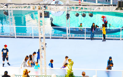 Photo prise hier vers 14 heures sur le Strip de Las Vegas : le grand canal de l’Hôtel Venetian et sa patinoire de saison.