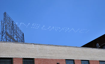 Surprise de la journée ? Dans le ciel de la ville une escadrille d’avions crée un message publicitaire “live” ! Etonnant ! Toute la ville avait le nez levé vers cette attraction peu commune. Au fait, c’était pour quelle compagnie d’assurances ?