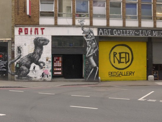 Photo prise le 26 juin 2015 vers 8h30 au coin de Rivington Street et de Great Eastern Street. A la RED GALLERY ils se déclarent être des “Creative Guardians“.