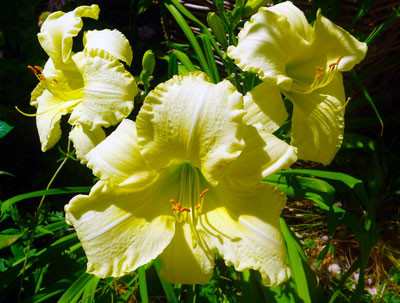 Photo prise au jardin il y a quelques jours : hémérocalles jaunes.