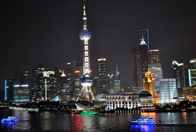 line de Pudong vu du Bund de Shanghai est une des merveilles du XXIème siècle. Le ballet des bateaux illuminés de la plus kitsch des manières rend le spectacle surréaliste. La Pearl TV Tower et le “Décapsuleur” y trônent fièrement.